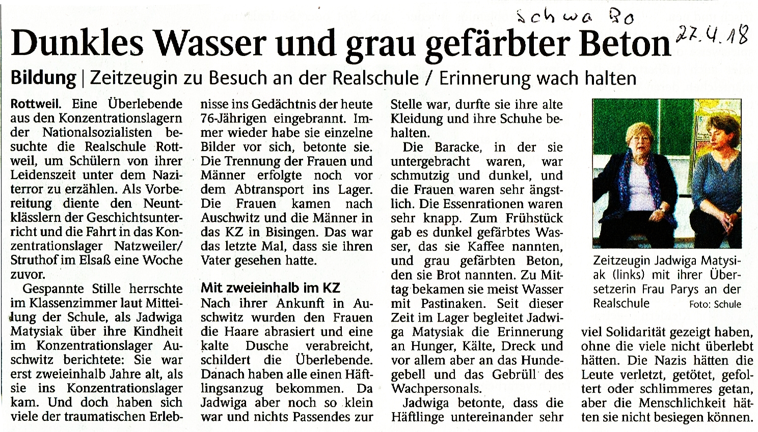 Auschwitz-Überlebende gibt Geschichtsunterricht Schwarzwälder Bote 24.04.2018 (799,9 KiB)
