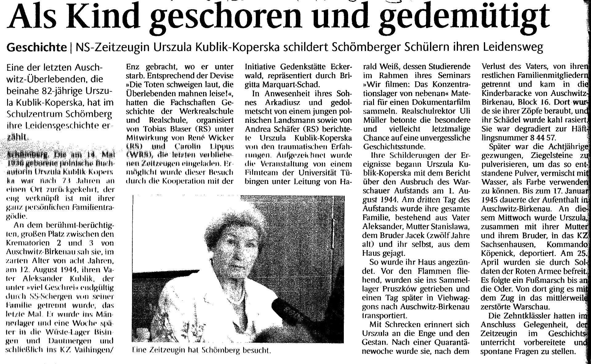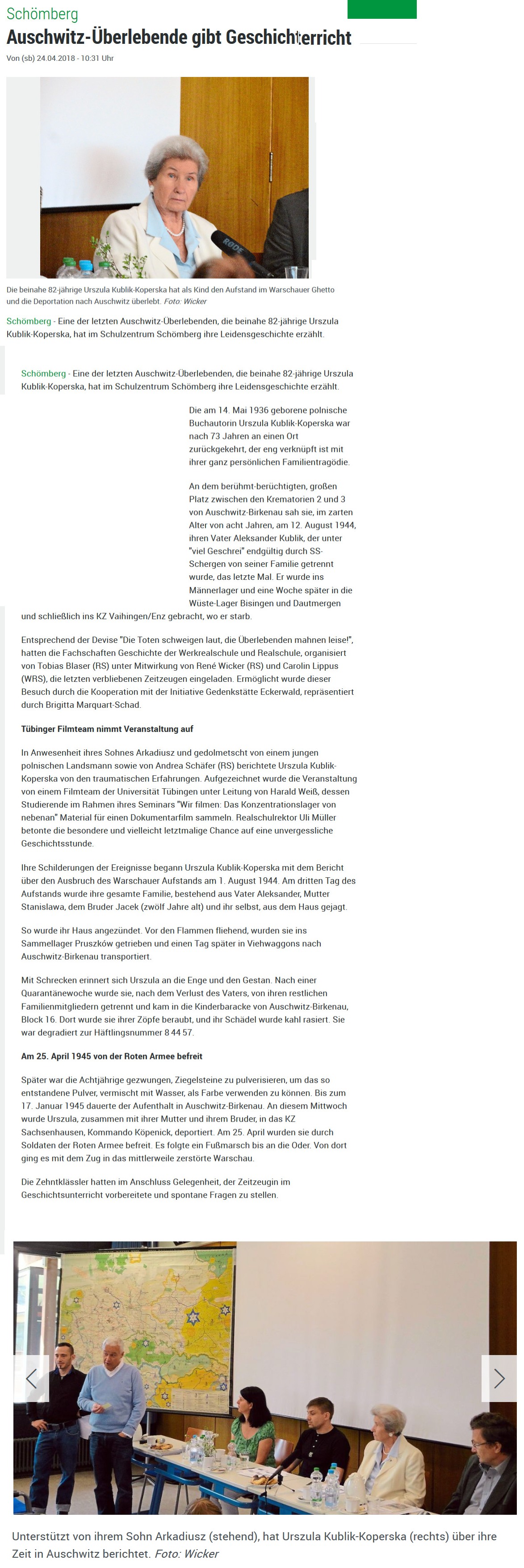Auschwitz-Überlebende gibt Geschichtsunterricht Schwarzwälder Bote 24.04.2018 (799,9 KiB)
